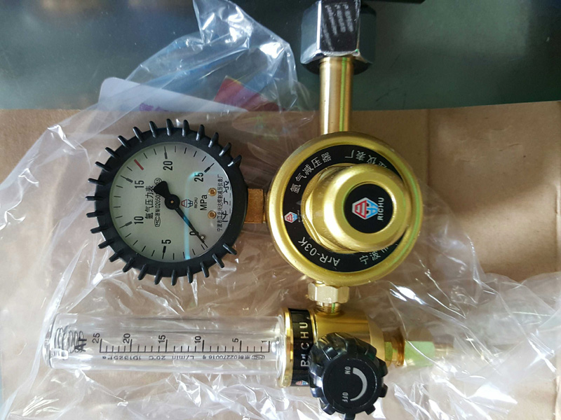 8、要检查是否漏气,先把气瓶阀关好,然后逆时针方向把调节螺杆旋出一圈。如果高压表读数减小,那么就是减压器高压部分或气瓶阀漏气。如果低压表读数减小,那么就是减压器低压部分或减压器后面的管路及设备漏气。如果高压表读数减小,同时低压表读数上升,那么说明减压器阀座处漏气。以上漏气均可用检漏效果良好并安全的溶液检漏。